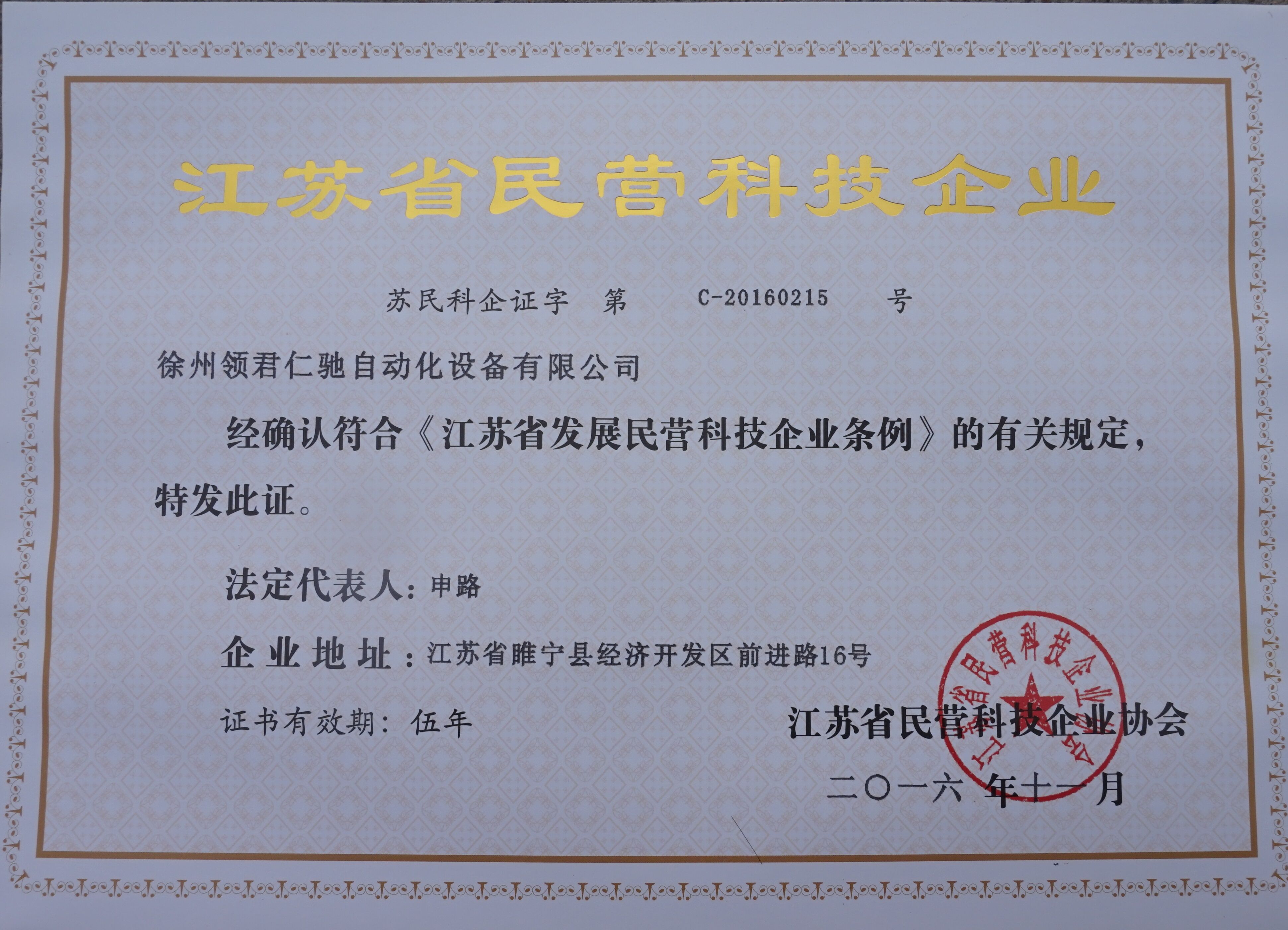徐州領君自動化設備有限公司是一家專注于電子專用設備的研發、制造的民營科技企業、高新技術企業,位于徐州市睢寧縣,注冊資本1000萬元,廠房面積為3200平方米,員工55人,主要研發、生產、銷售電子工業專用設備:公司擁有CNC加工中心、銑床、數控車床、車銑復合CNC、磨床等加工設備和檢測設備約26套,可以獨立完成產品研發、設計、制造、性能檢測等全部工程。 公司堅持“科技創新”方針,長期潛心致力于智能裝備領域、目前已獲得12項發明專利(25項已申報),14項實用新型專利,4項軟件著作權,提交發明專利申請20件。并在長春、青島、西安、合肥、昆山等地建立銷售服務中心。公司產品線束線纜加工設備主要應用汽車、電動車、航天航空、高鐵、軍工、電控、新能源等行業。