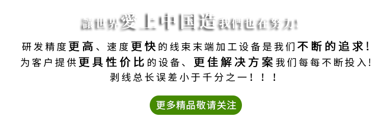 專注于做線束行業優質的設備是我們持之以恒的目標,我們將一如既往,持續改進,以促進行業發展、以真誠服務客戶為己任,我相信以我們二十年的機械制造與機械維護經驗,可以解決您的企業在生產中的難題和困擾。